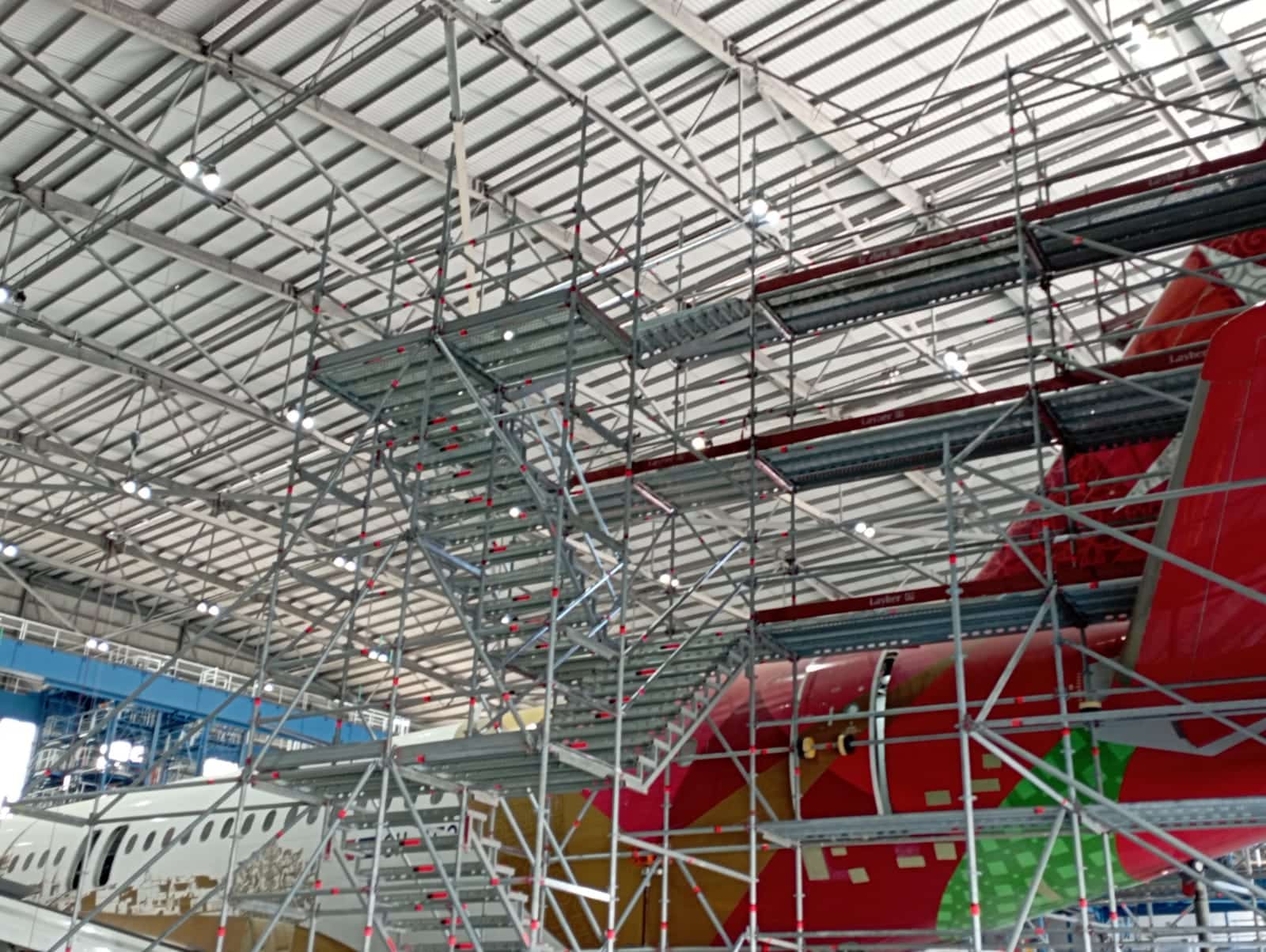 As a key scaffolding contractor to several of Malta's aircraft repair facilities Makaw Scaffolding was contracted to design and provide safe access around various areas of this aircraft in order for maintenance works to take place. Maximum attention was also taken into account in order to ensure that all concerned areas were certified in accordance with the safe working load requirements of the client whilst providing safe access using an inbuilt staircase. Due to the time critical industry Makaw scaffolding ensures immediate availability of fully certified personnel and equipment using our vast stockpiles of Layher all round equipment which is immediately ready to be deployed for our clients requirements.